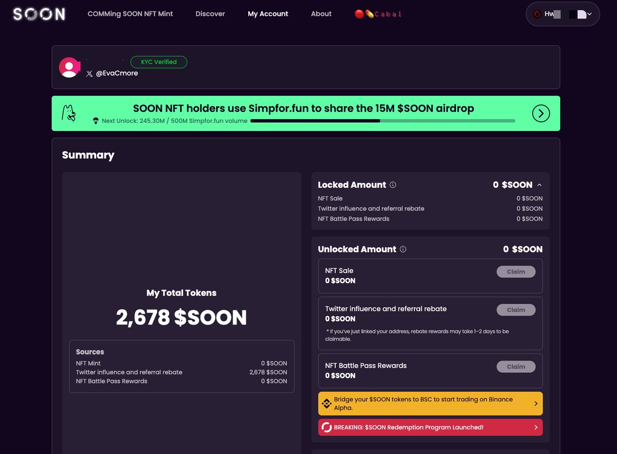 兄弟们, $SOON 起飞了,大家可以看看有没有忘记领取空投的