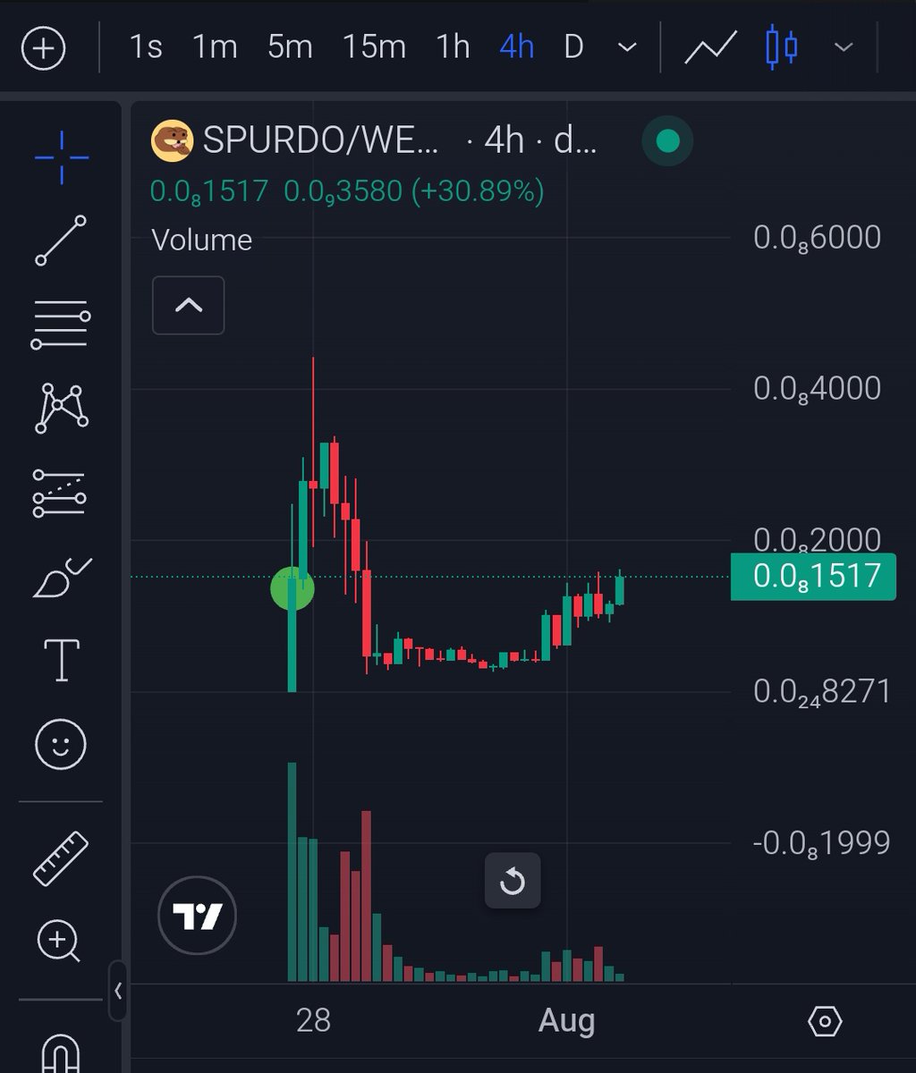 在$ eth上看看涨看涨$ spurdo,100万MC非常接近🚀 团队和社区正在努力工作,只有几个小时,潜力很大 关注@eth_spurdo 图表: