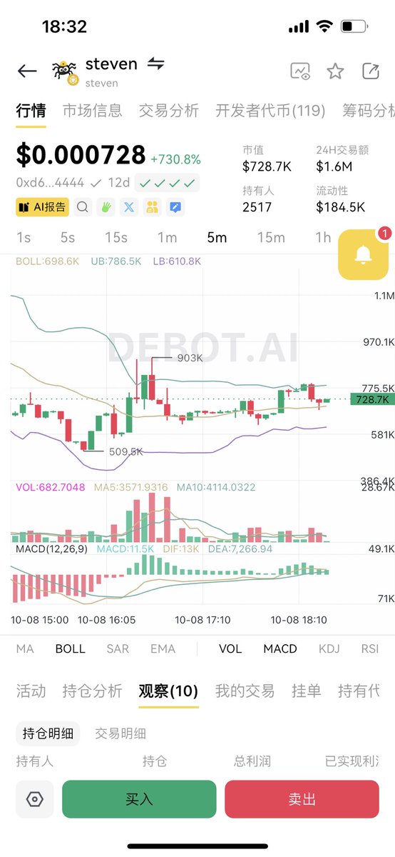 兄弟们!买了 $steven 没? $Steven 不会辜负任何一个人! 兄弟们没有机器人的可以尝试用这个交易机器人 (支持8大功链,速度快到飞起,最重要的是手续费超级便宜,百分之0.5!)