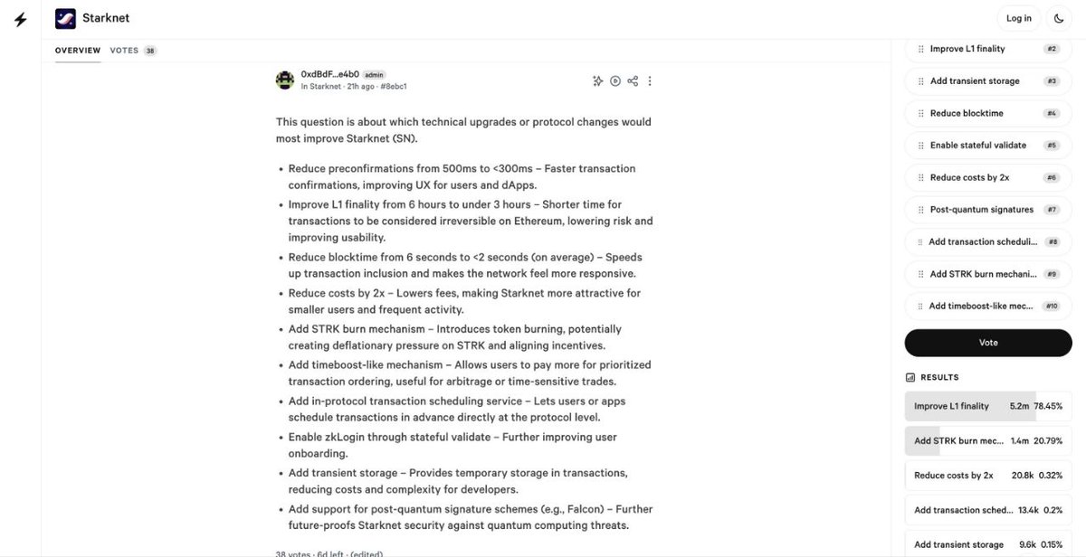 @Starknet 社区新一轮治理投票已经启动!作为 $STRK 持有者,你的一票直接定调 Starknet 下波重大升级方向,必须重视起来!