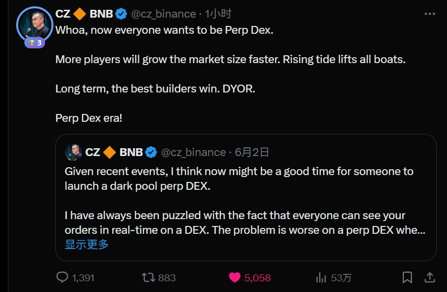 大家对Perp的fomo情绪又上去了,最近印象深刻的是,二狗老板买了order,然后order最近上线了币安合约。除了刷Perps积分之外,感觉可以找点潜力的产品布局。