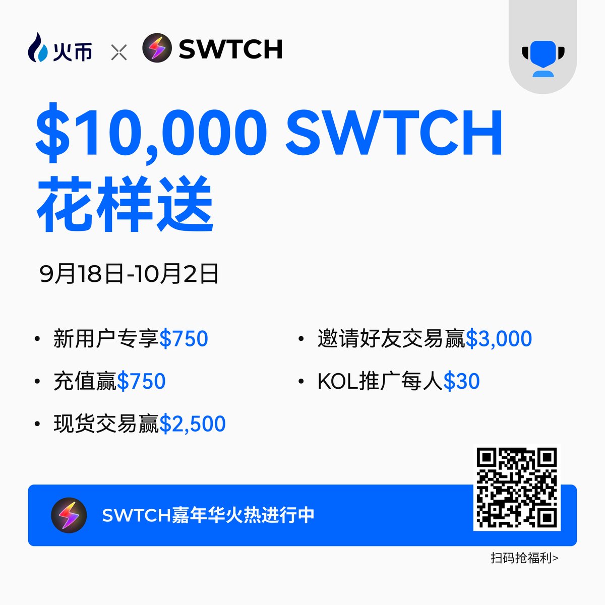 9.9 21:00 (UTC+8) 开放 $SWTCH 币币交易(SWTCH /USDT)