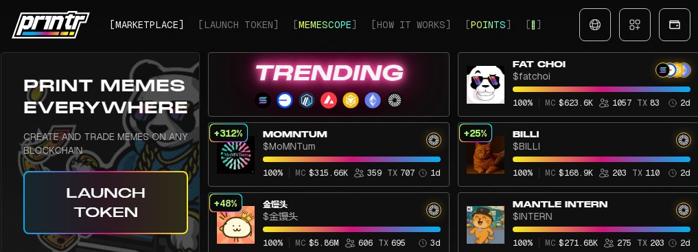 Mantle与@printr @MerchantMoe_xyz 强强联手,用户可以无缝发行、交易最爱的 meme 币。Printr 是个多链 Meme 币交易平台,有很多厉害的meme早期都是从这里发射出来的,而且此前报导 @printr 与 Bybit 合作筹集了450万美金,这是一个很重要的信号,看来势必要在 Mantle链上引爆新一轮的meme热潮。