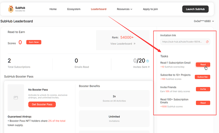 0撸 @SubHubStack积分教程,瓜分7%代币空投