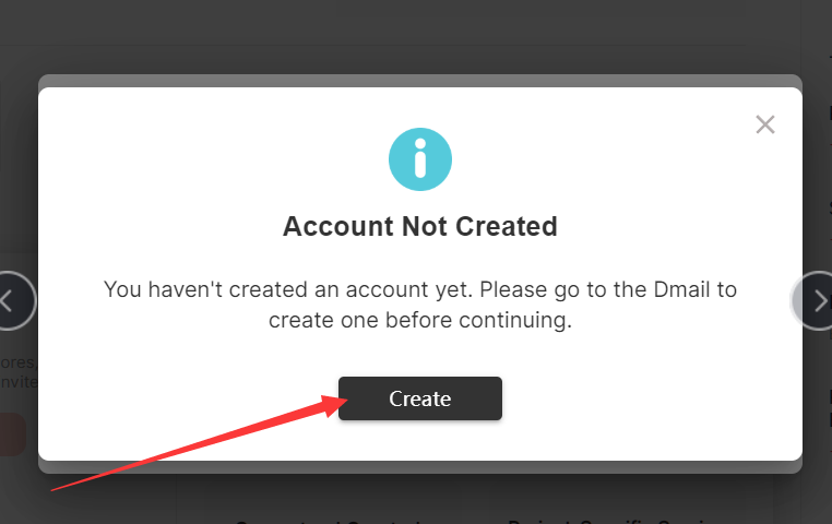 点右上角绑定 #OKX 钱包,如果你这个钱包地址没有注册过Dmail,则会跳出如下提示,要求你先去注册一下Dmail邮箱:
