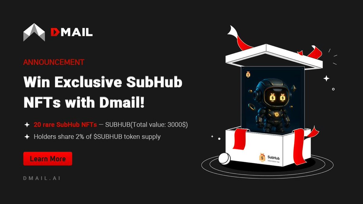 Dmail @Dmailofficial 深度合作项目 SUBHUB @SubHubStack 即将正式发行其原生代币 $SUBHUB !SUBHUB 官方已明确公布代币空投计划!