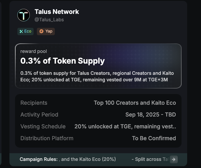 这说明他们很重视 内容创作者和区域社区的贡献,而且跟 Kaito 生态挂钩,生态联动感强。