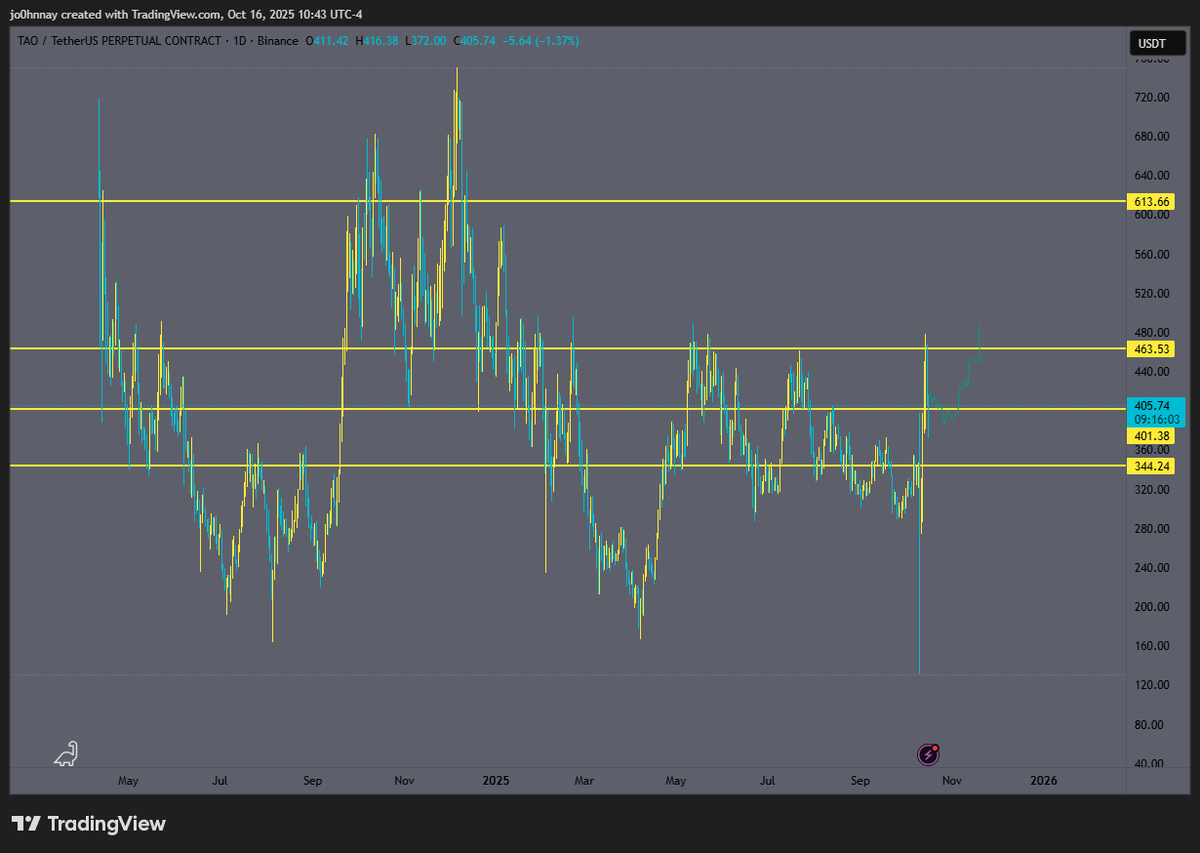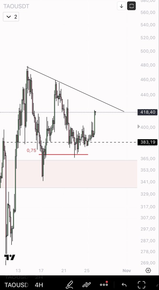 2. $TAO - 之前发的最后一版钻石手有提过,这币跟SNX类似,上下波动很大,但凡设止损就一定会给你打掉,持仓体验非常不好,只能看好的价位冲进去钻着
