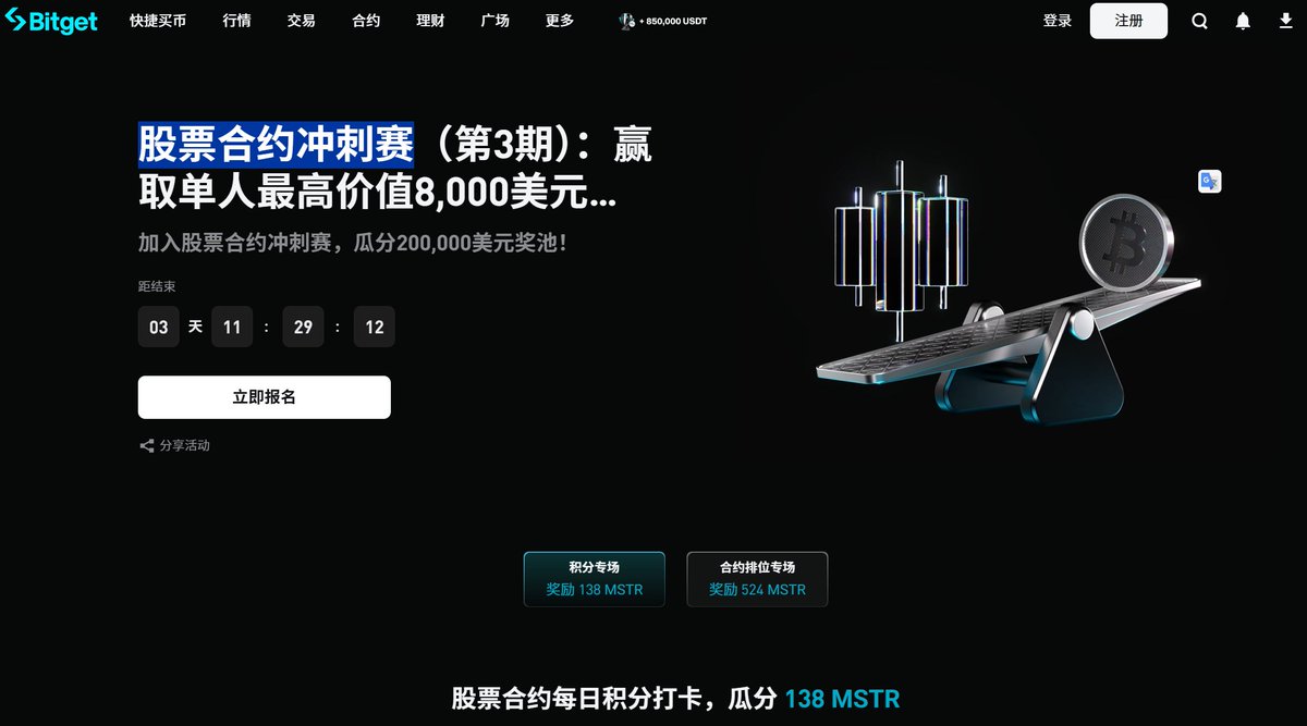 Bitget在在搞「股票合约冲刺赛」第二期活动!
