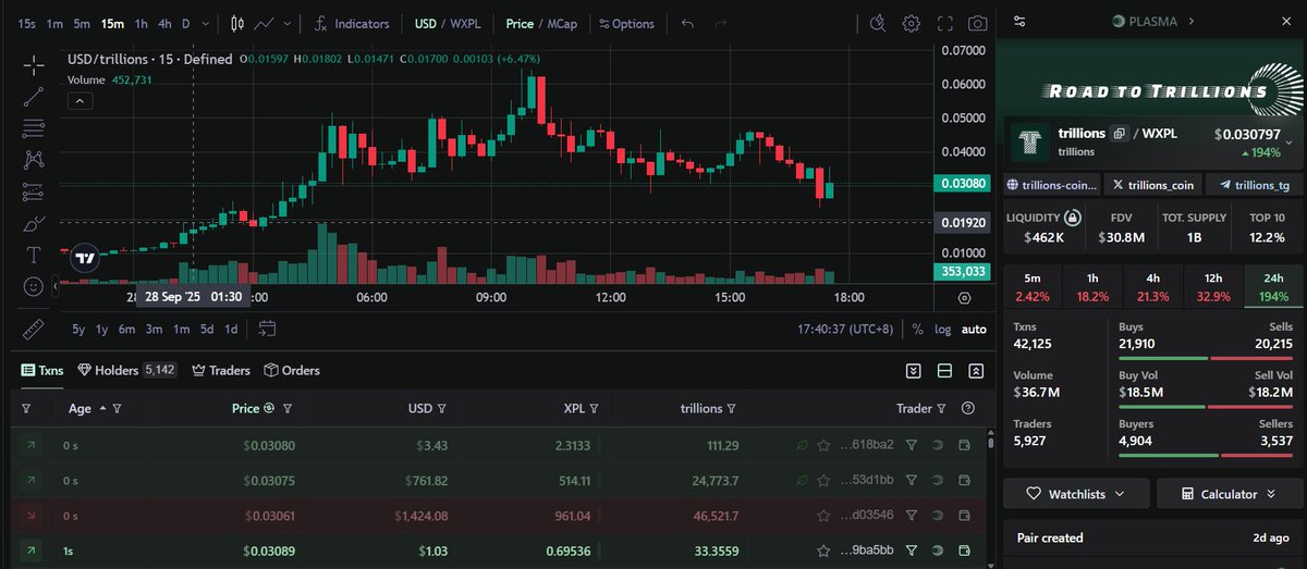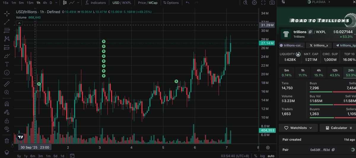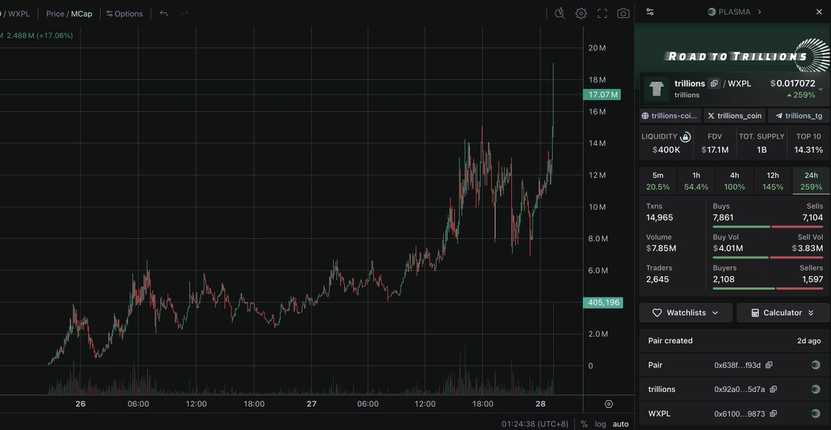 $Trillions 前两天什么点位买进去都能赚,大部分人4M左右进场,已经现在10x