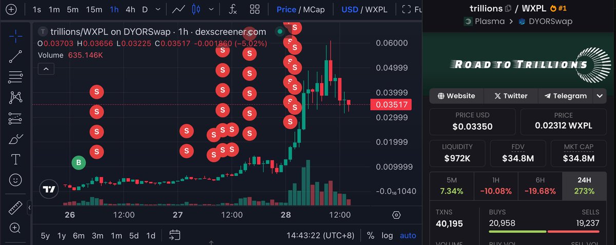 龙头 $TRILLIONS 市值今天最高已经达到 60m,整条链的氛围被点燃,其他盘依然有很多的机会。