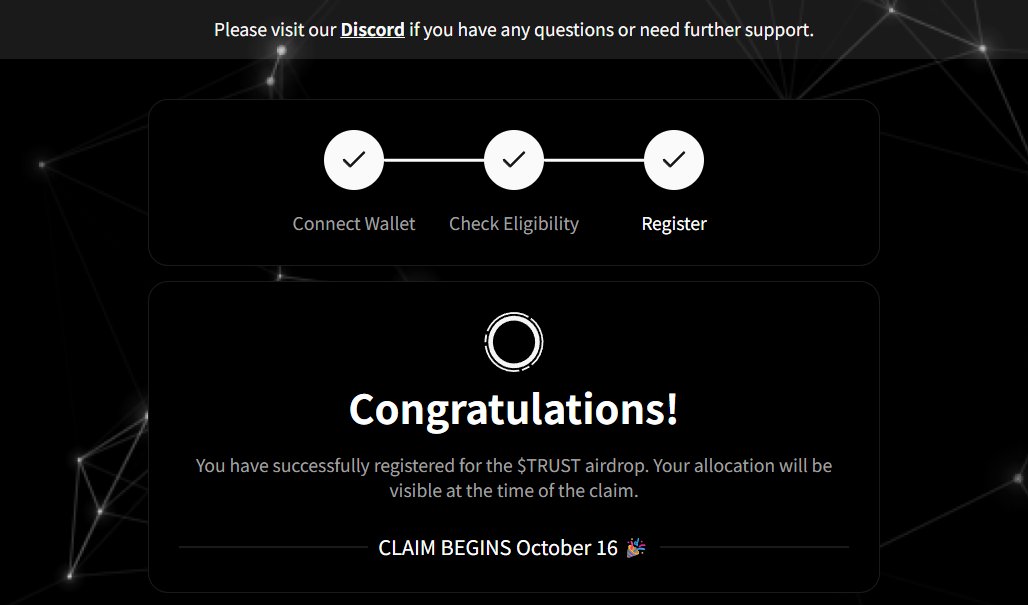 Intuition 👁️ @0xIntuition 跟着参与过的兄弟去注册空投,报名于 10 月 14 日结束, $TRUST 索赔将于 10 月 16 日开始