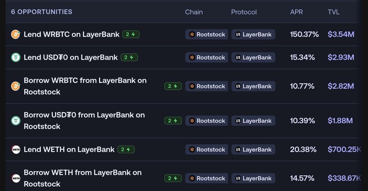 他们现在不只是搞借贷,而是真在把比特币(BTC-Fi)和真实世界资产(RWA)结合起来,做出稳定的收益结构。比如在 Rootstock 上存 mBTC,自动循环放贷、再存入,年化能到 50%+,收益流畅得像在银行。