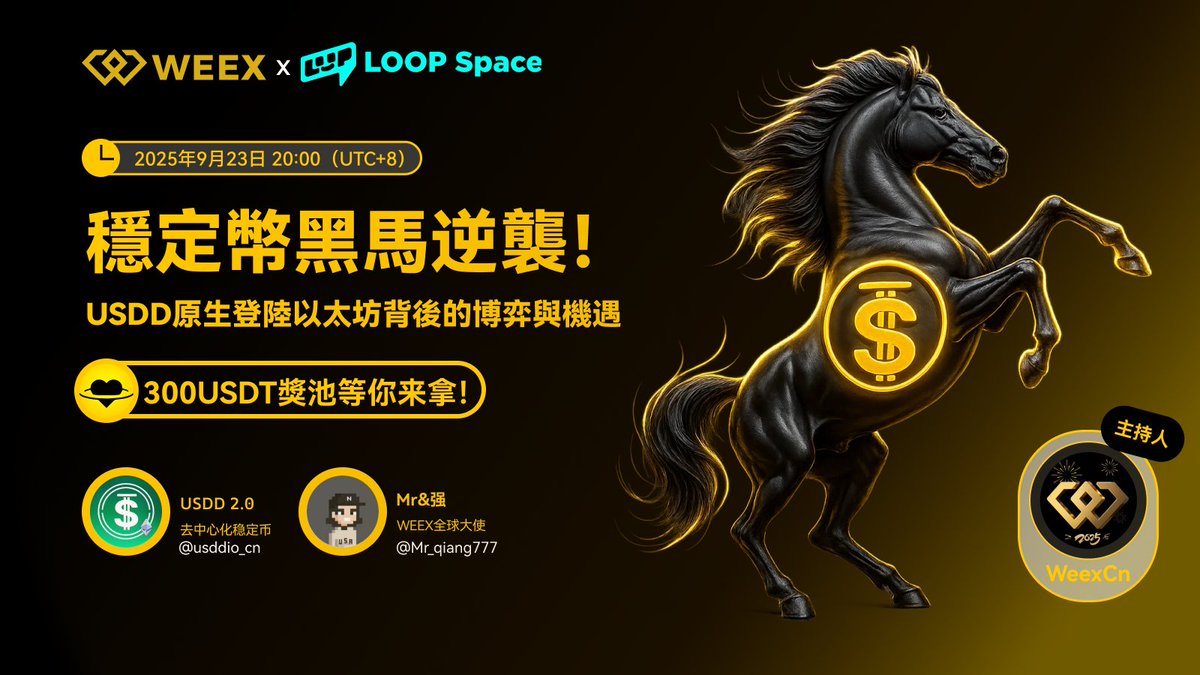 #WEEXSpace 最新活动来了!这次邀请到 @usddio_cn 和 @Mr_qiang777 两位嘉宾,一起聊聊 $USDD 作为新兴稳定币在以太坊生态的发展潜力。
