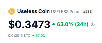 哇! $USELESS 当日上涨 65%,即将突破 ATH。