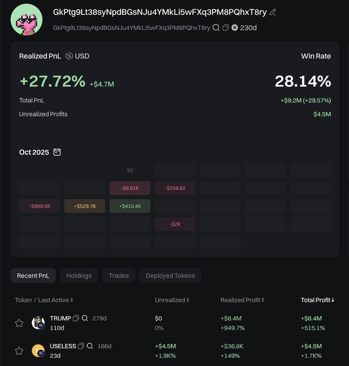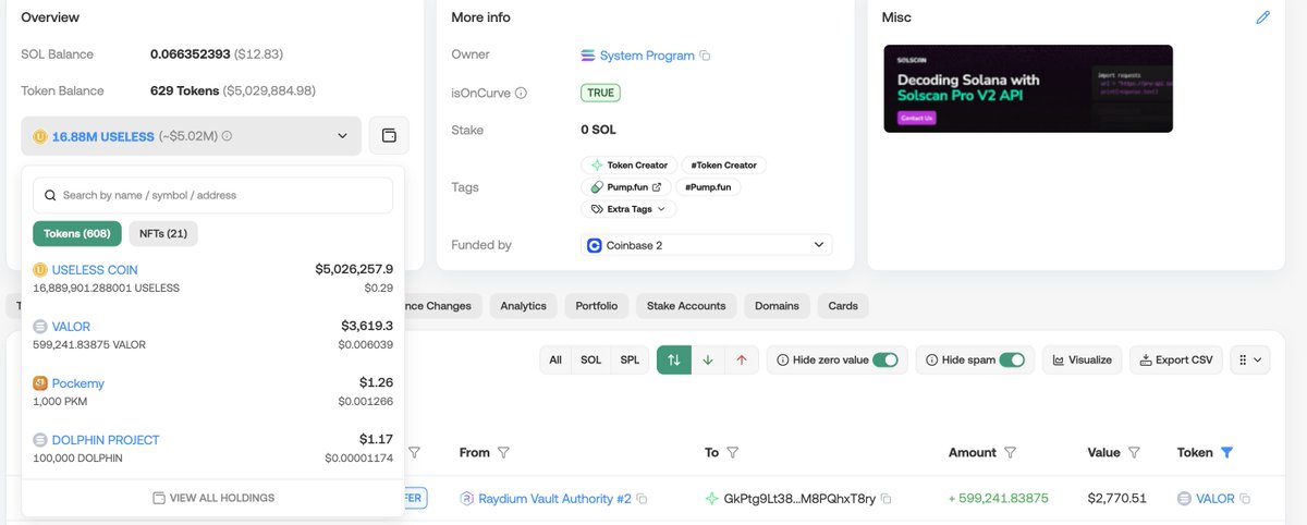 感觉是 $useless 持币500万美金的大庄,和集团在搞事情,他也持有了。这个币还看到wlfi的adivsor、aol这些人川普家族概念币的人一起喊。solana集团被bsc抢了这么多流量绝对着急死了😂 重新复兴下