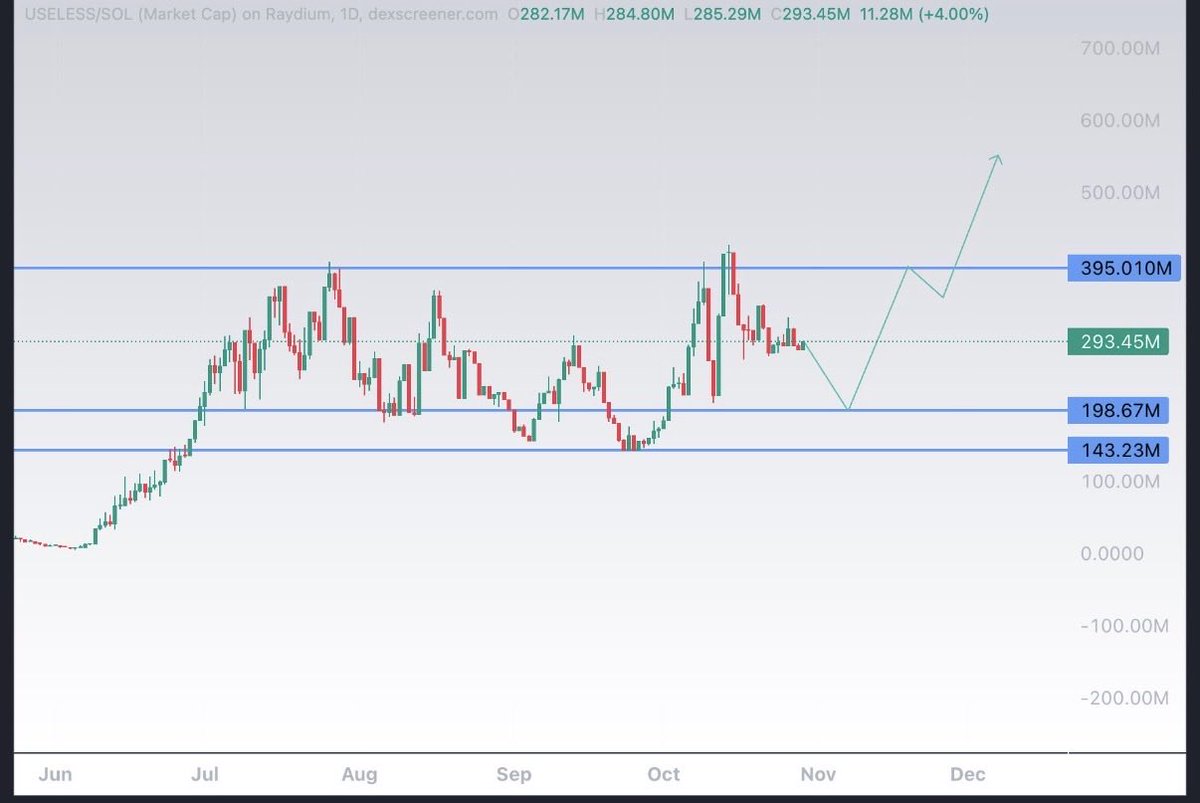 我发现 $USELESS 现在非常看涨。该图表将在下一轮上涨之前测试 200M mcap,然后突破 400M mcap 可能是目标。社区活跃,持有者数量不断增长!否则,我更看好@SANTATOKENSOL2