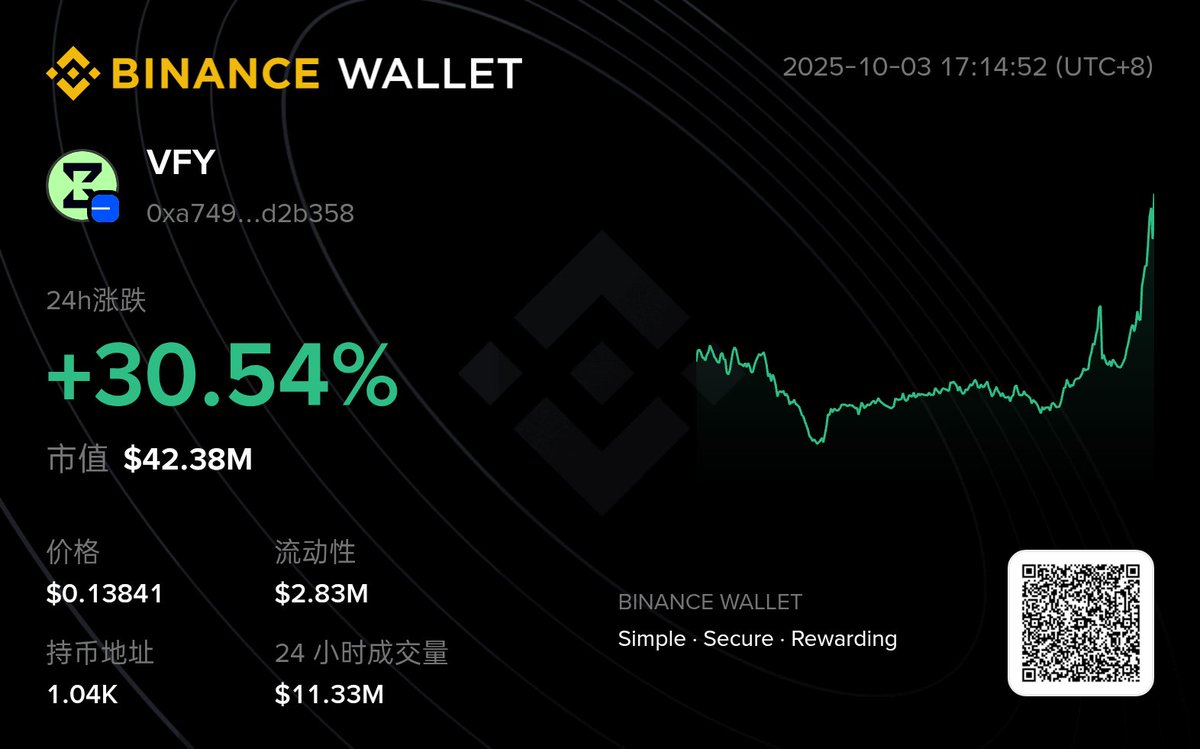 $VFY 又上了 @bitgetglobal,一线所基本都上了 #Gate、#Binance、#KuCoin、#Bitget 热度拉满,流动性拉满!
