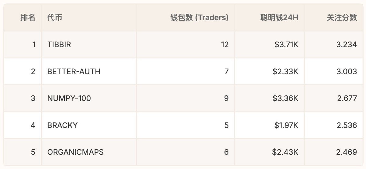 3. 聪明钱关注度(Attention Score) TOP5