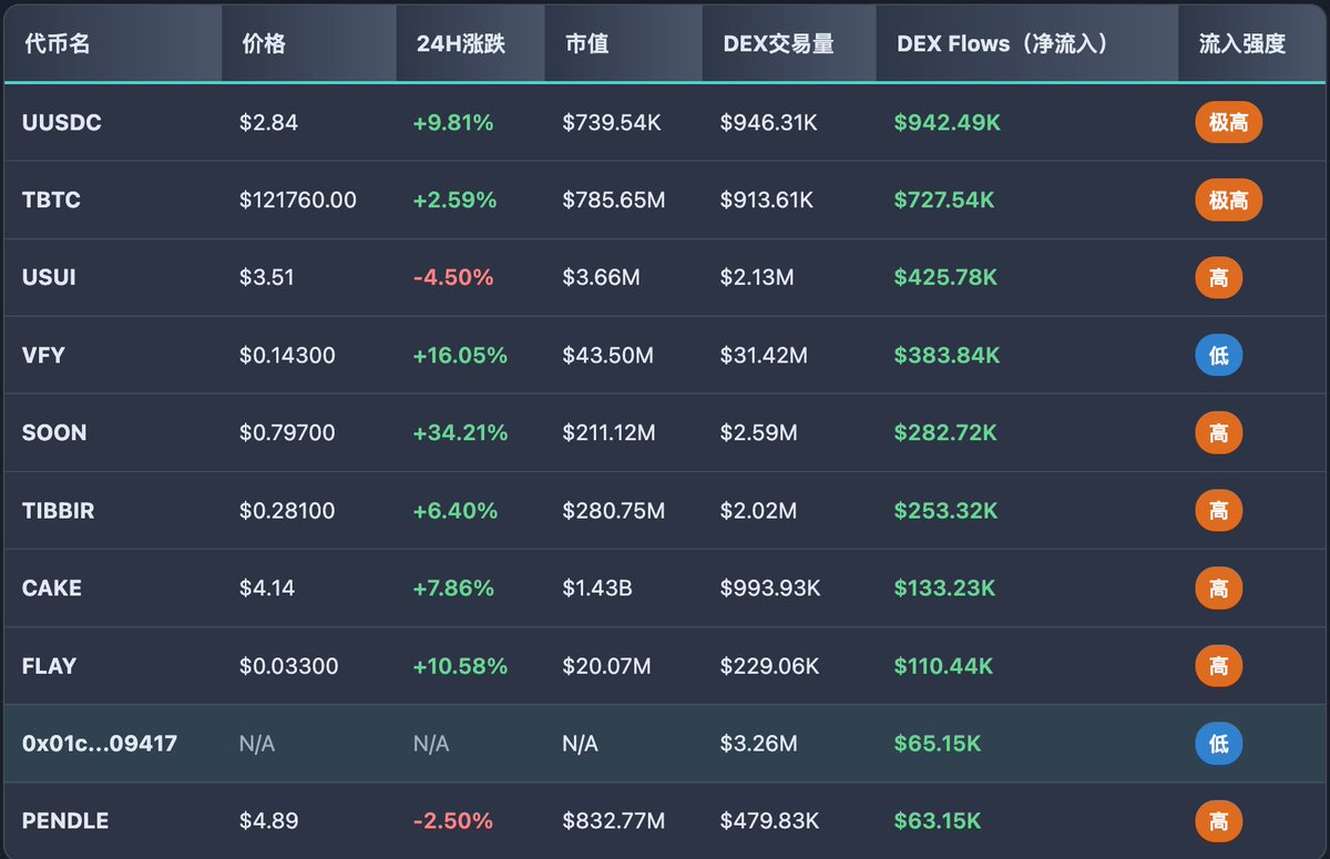 2. DEX资金净流入排序 TOP10