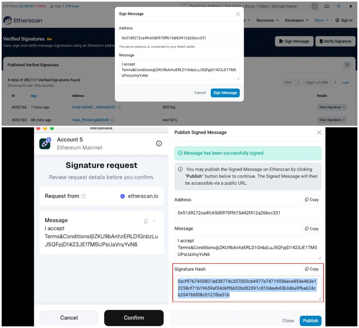 4、复制下面这段话签名提交(记得把文字去掉,@后面是你的地址),然后复制你的hash