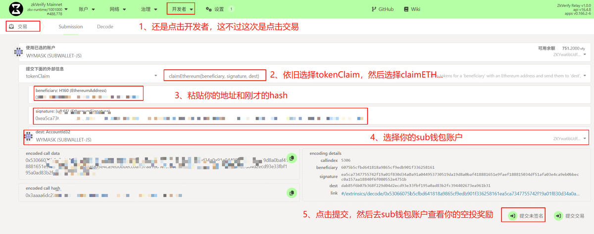 5、打开链接连接你的SubWallet账户,按照图片步骤提交信息领取空投