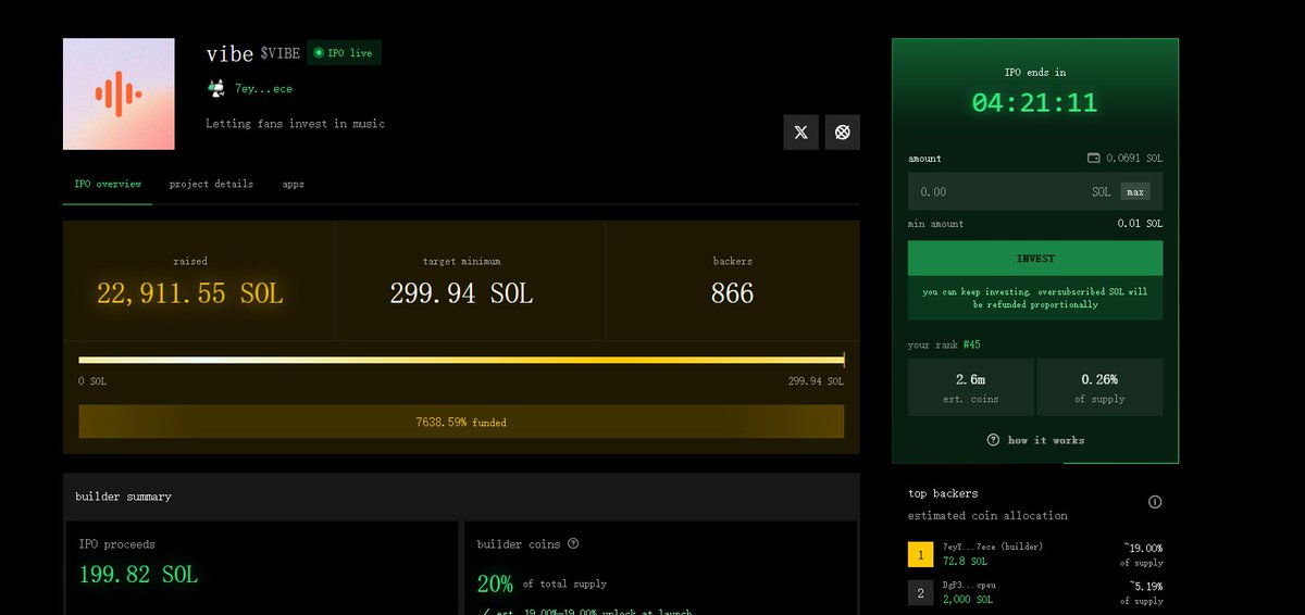 devfun第一个ico 没睡的起来打一下吧 应该是大毛 https://t.co/MjjcnmySRI just aped $SOL into the IPO of $VIBE on @devfunpump gm to all early degens 🫡 https://t.co/mSjmJLz0B8https://t.co/18QAoRcidC 是什么关系? 简单说:https://t.co/mSjmJLz0B8https://t.co/18QAoRcidC 的亲儿子 团队是 https://t.co/18QAoRcidC 早期投资者 技术上深度集成,让 AI 生成的 App 能一键发币 https://t.co/mSjmJLz0B8https://t.co/18QAoRcidC 的 meme 模式,升级到了 AI + 实用应用的新赛道 #Solana #Crypto #AI