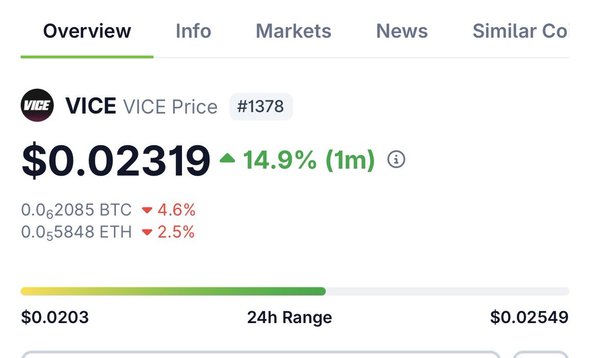 冲! $VICE 刚在Uniswap上线,这波行情要盯紧了!上dex后涨幅巨大