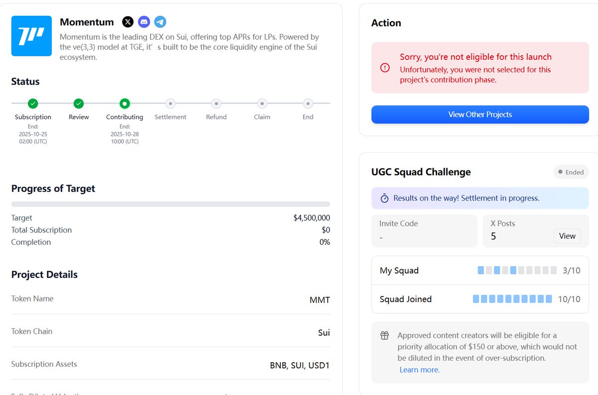 忙到起飞的一天啊!连轴转了一整天没停,头好晕!🫨 先复盘下 $vult 这次的打新。 到下午的时候写了5篇推文,在vult钱包存了一万刀,排名都在300多,以为没戏了。结果晚上一查,kaito钱包和vult钱包都给上到了白单。 8点开打,官网直接打不了,vult就拉到10m了。后来看群里说OKX钱包可以打,12m的时候用绑定了kaito钱包才上了1000. 但是vult钱包白单根本没法打,试了uniswap、1inch全失败,这个白单直接浪费掉了。 8点开放1万刀额度,马上狂点,一直显示失败,后来30m的时候怼进去了4000刀。 目前40m,整体盈利不到4千刀。2个小时真累得够呛。 〰️〰️〰️〰️ Mmt @MMTFinance 晚上也公布额度了,本来显示我最大额度有14000刀的,结果我刷新一下变3000刀 😭 不过还好,小队蹭上了mmt 前排的大佬,并且在我每天的鞭策下大家干活都很齐心,全队都拿到了1000刀的不稀释额度。 听说组队不稀释额度最高就是1000刀,也算是圆满完成了这期的任务。队友们给力!💪 〰️〰️〰️〰️ @zkpass 在kaito Launchpad上也开了,2m额度,fdv 100m,目前已经超募20倍了。 Tge解锁50%,剩下50%三个月后解锁。 这个也准备塞! 最近又是好多要塞钱的,打不过来了。。