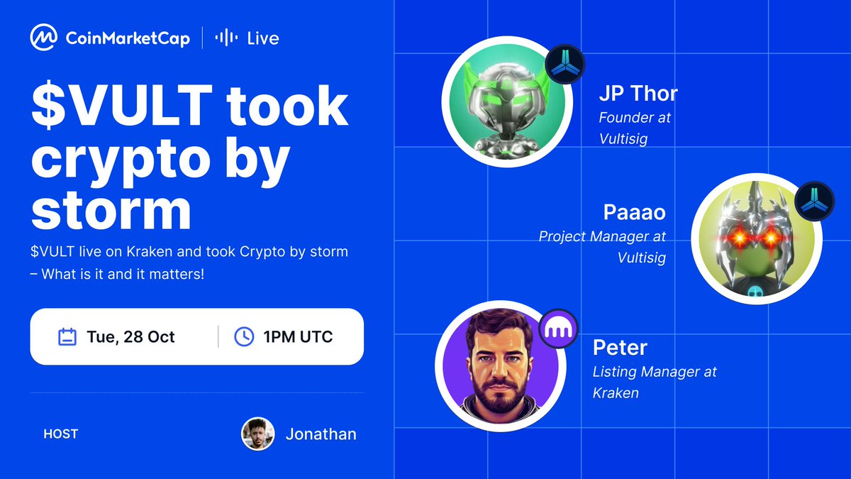 [CMC Live] $VULT 掀起了加密货币风暴 ⏰ 10 月 28 日下午 1 点(世界标准时间) 📍设置提醒: 🔥 $VULT (@vultisig) 在@krakenfx 上直播并掀起了加密货币风暴。找出它是什么,这很重要!