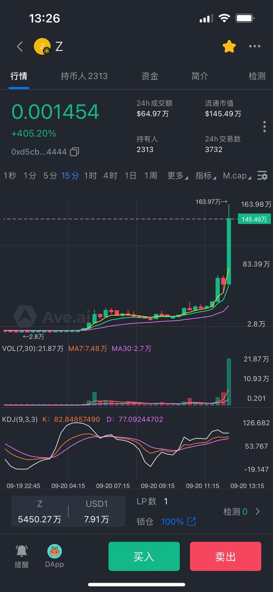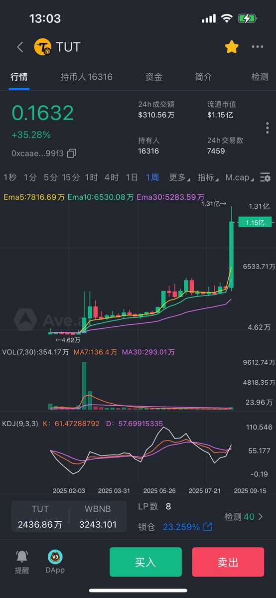 $TUT 上币安没破100M 现在破了 连它周边的 $Z $W 都翻倍了 可惜了我的多单被天地针损了