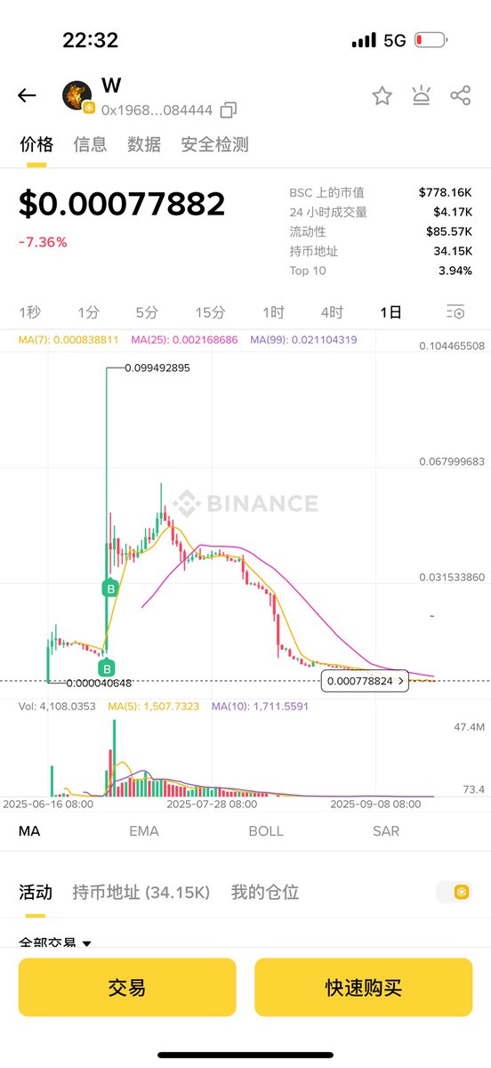 🐺 $W 这个币还有机会吗?买入后从未涨过,已经跌了70天了。@W_coin_1 官推每天按部就班的发推 😫