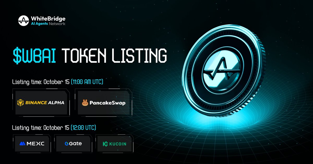 10月15日, $WBAI 在 Binance Alpha、PancakeSwap、Gate、MEXC、KuCoin 同步上线。