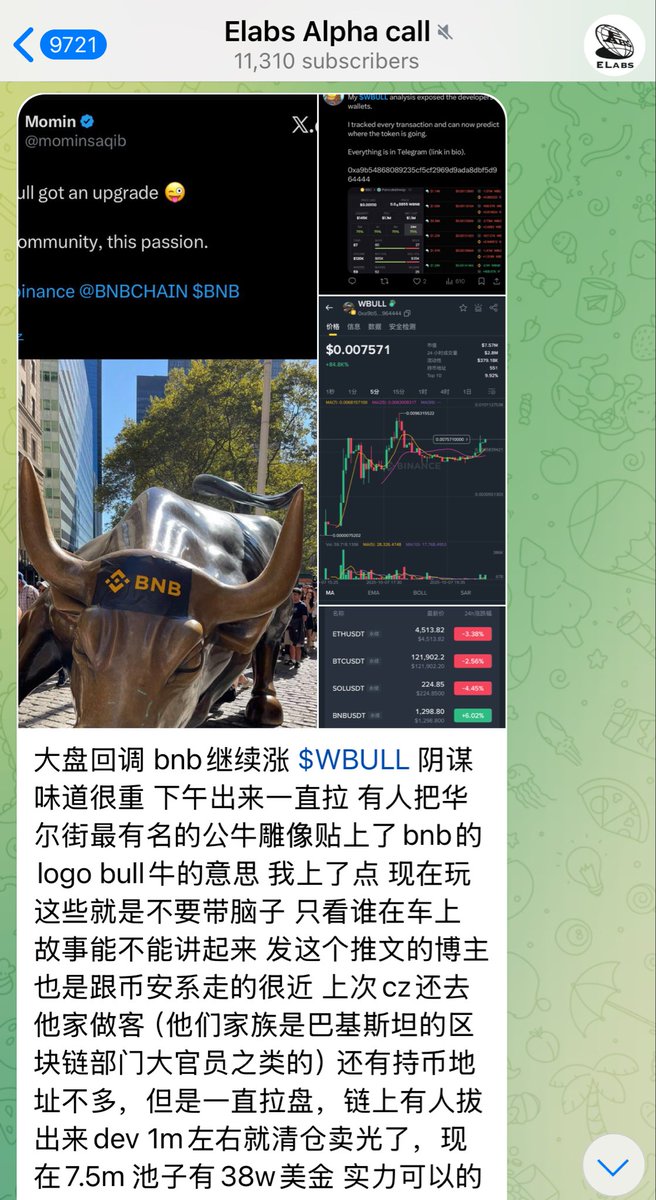 现在开始学中文!it’s time to learn Chinese! 观察到一些情绪,今天好几个老外朋友过来找我问bsc的中文ticker,昨天在TG喊的币安小何也10x了,币安人生继续冲新高。 $wbull 西方叙事,昨天发出来之后翻倍了,东西方文化融合,币安治霸华尔街牛,希望能到50m吧!