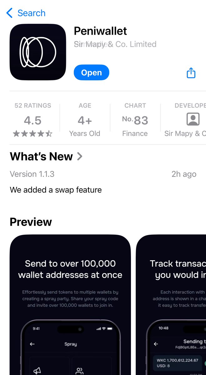 在Android或Apple Store上下载@PeniWallet,并创建帐户并与BNB资助。