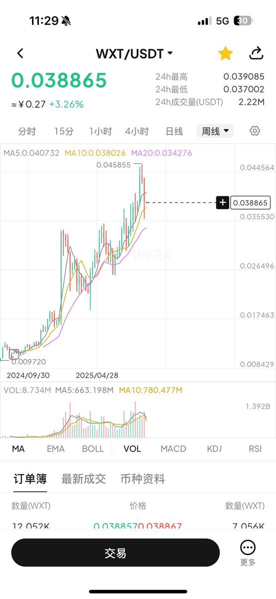 说多了大家可能觉得我是个托,但确实目前币圈行情冷淡,大家并不缺少资金,只是没有合适的项目,我个人觉得平台币是一个非常不错的标的,跑路风险低,升值空间大, $wxt 确实是我一直在默默增持的项目。