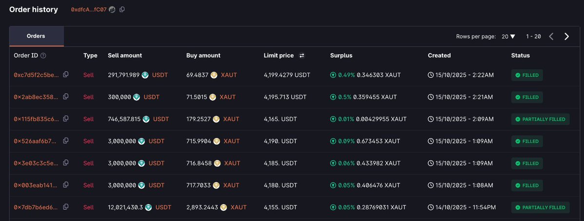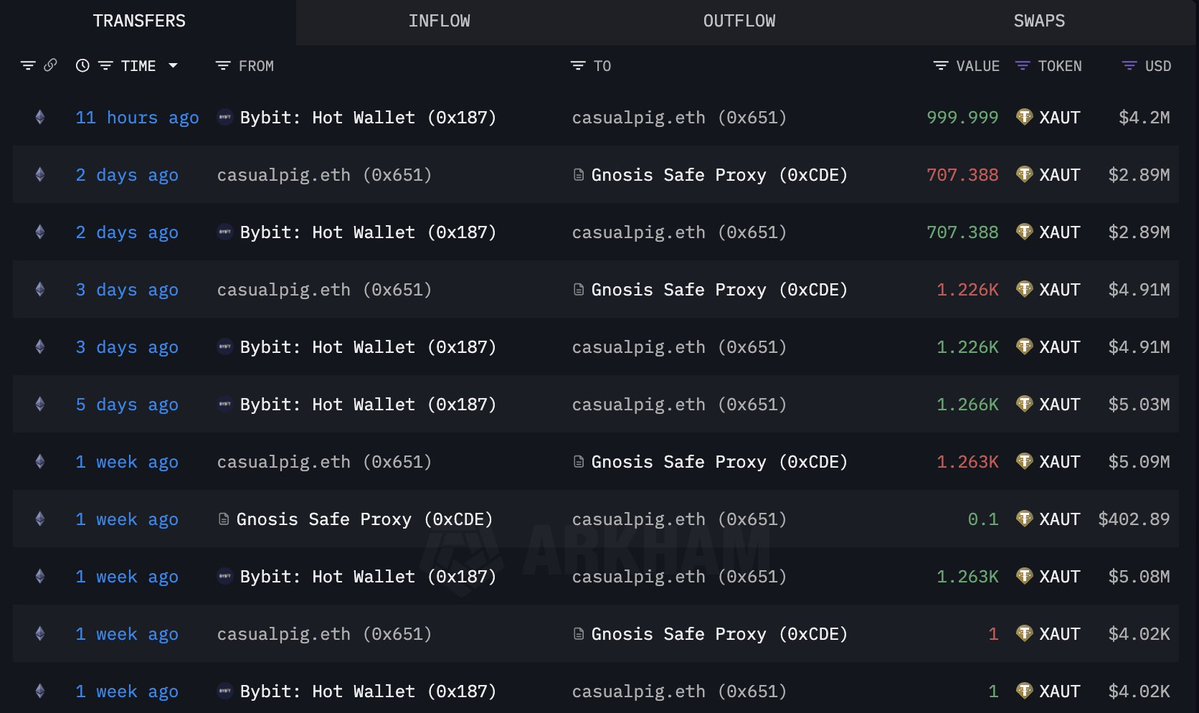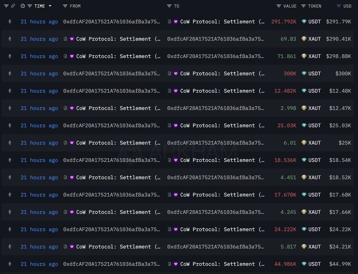 「LUNA/UST 崩盘时做空 $BTC 赚取 516 万美元的聪明钱」过去 8 小时花费 1201 万美元买入 2879 枚 XAUt(泰达黄金),均价 $4,168