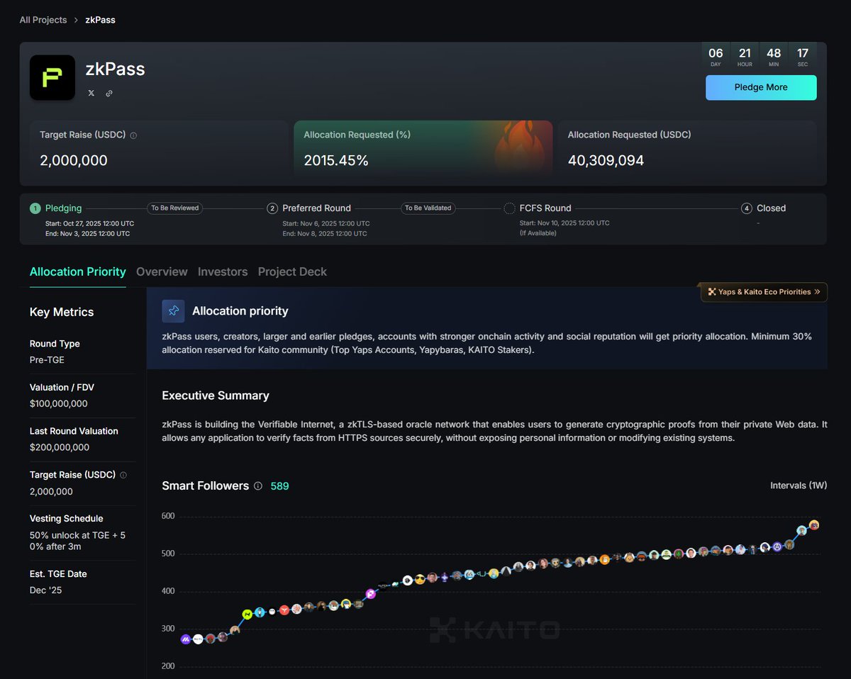 这次 @KaitoAI 的zkpass我打满了25wu,越早打分配额度越高。