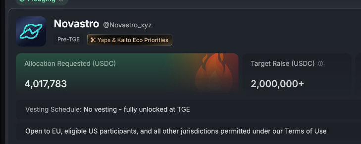 后知后觉,1个月前在Kaito launchpad 塞的 @Novastro_xyz 明天要开启tge 了。