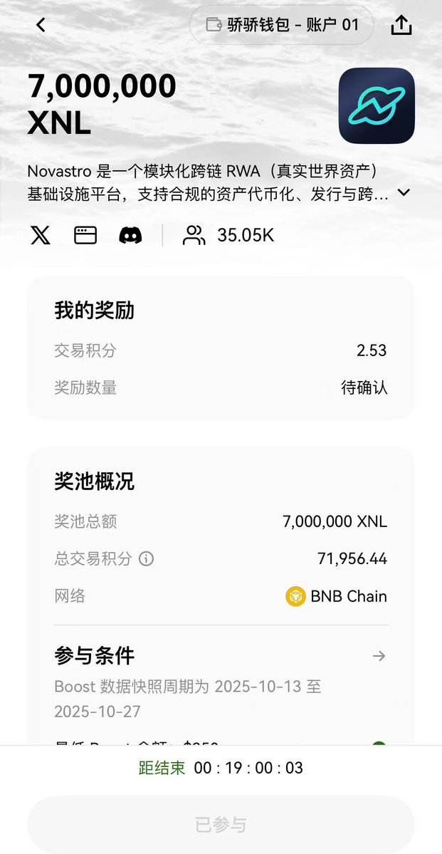 几个小时前OKX 官宣 @Novastro_xyz 上线新一期的Boost ,提供了700万枚 $XNL 的奖池。看看接下来能不能再蹲个宇宙所的公告。