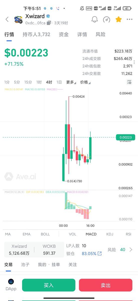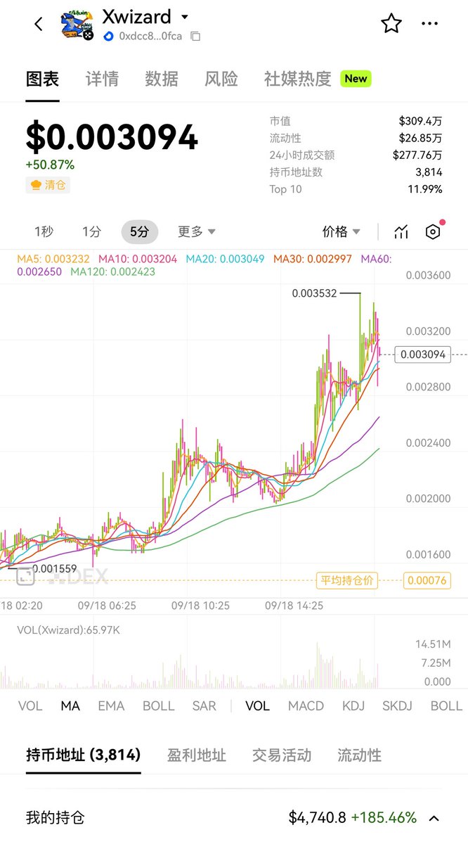 $Xwizard 150k最高到4m,睡前卖掉睡觉,醒来发现先浇给再V起来了,X Layer的情绪确实蛮强的。
