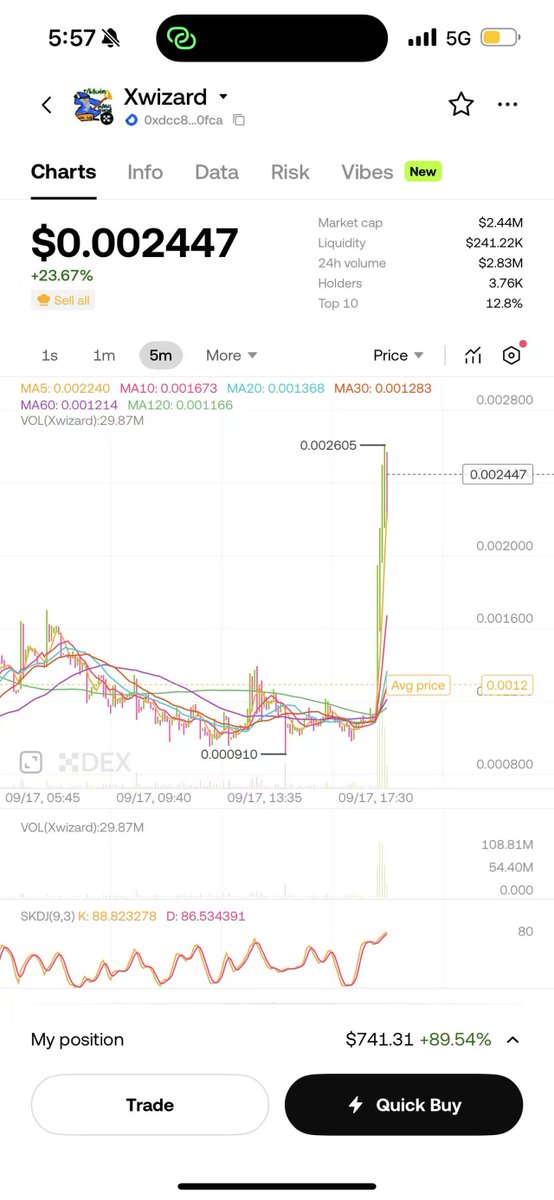 昨天忘记说的 $xwizard ,okx改背景fomo,然后换回去又跌了,后面被套的人太多被破cto涨到了2m, 现在还有1.2m 其实也挺强了
