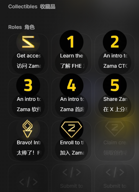 NFT这块的设计也挺有意思。他们不是随便发个纪念NFT就完事,而是把OG NFT做成了一个有延续性的激励系统。第一季发给了前250人,第二季扩大到前500,这一季则是前1000名都能拿到“Zama OG 003”。这些NFT不只是身份标识,还附带alpha测试的早期权限和一些还没公开的权益。这种设计其实是在建立一个有梯次的贡献者体系,让早期参与者有持续的动力。