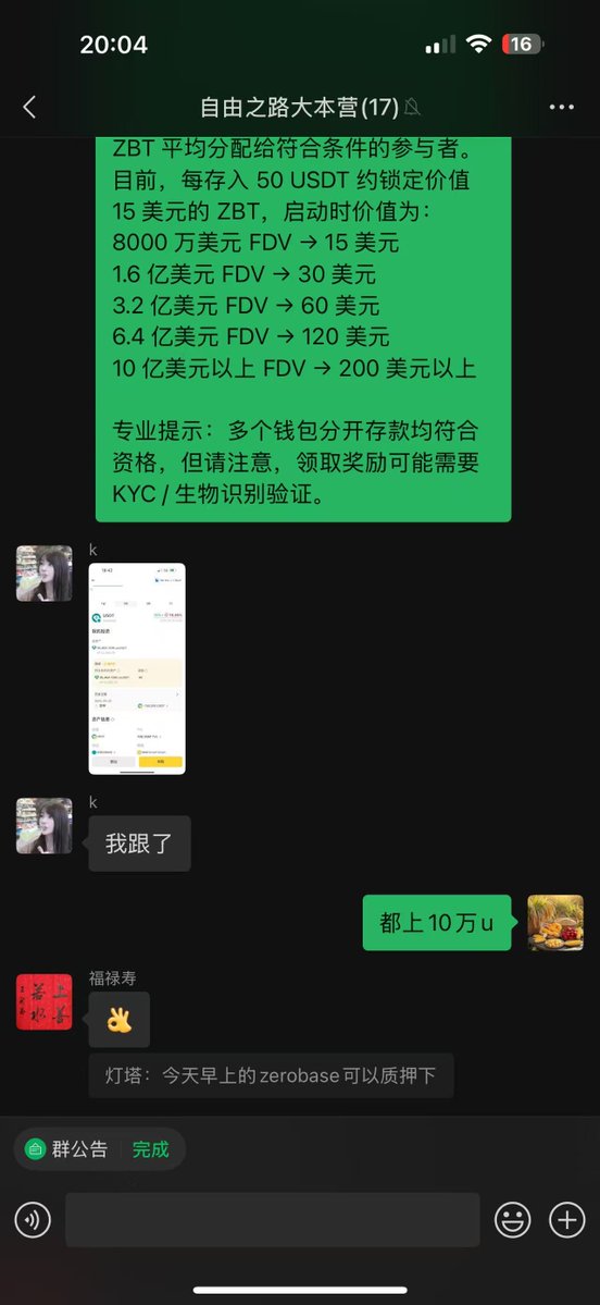 $zbt 群里基本都上了10w u ,10多天每人收益4000多u @mirrorzk 唐老板牛逼啊!以后我是弟弟 有什么吩咐直接招呼一声