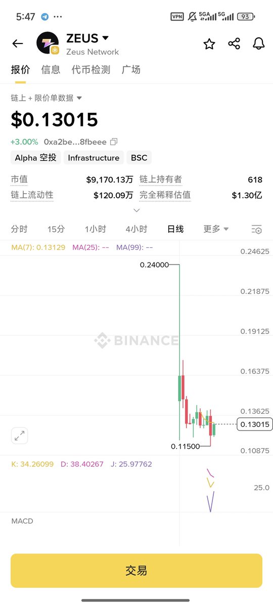🎈另外是币安 Alpha 交易赛,奖池 832 万枚 $ZEUS ,9/13-9/27期间交易量前 16,000 名用户将瓜分奖池,单个用户最高可获 520 ZEUS。期间只计算累计买入金额,可以看准机会撸个猪脚饭。