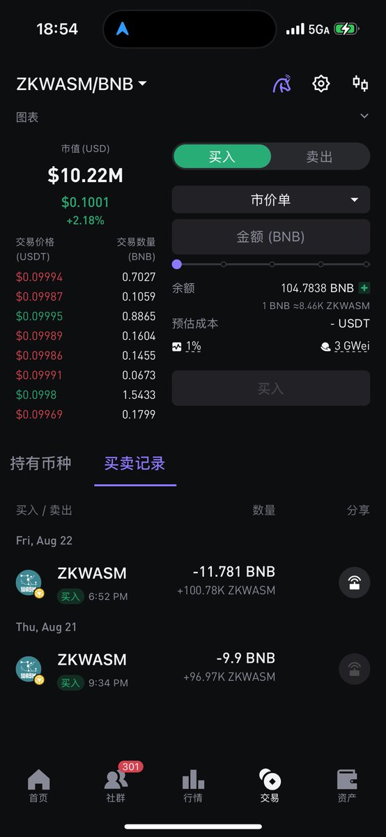 $ZKWASM 昨天我第一波买在高点,砸盘后我还补仓了,目前也打算继续持有,与UnicornX一起共建。💪
