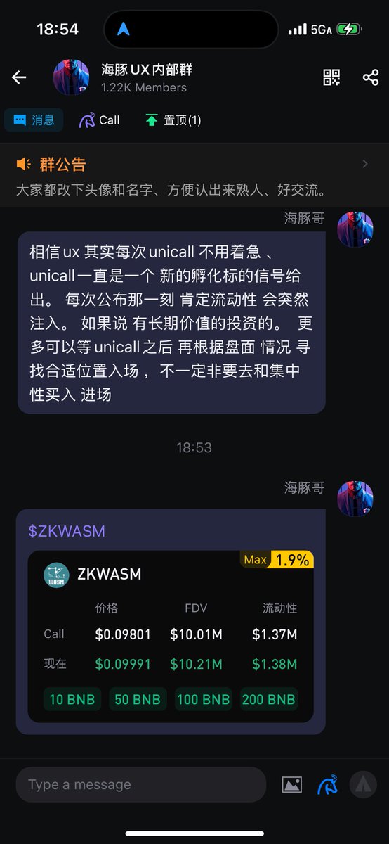 昨天他们和 @unicornxdex 搞了个 Space + unicall,结果被大科狙了一下,短线拉升后又跌回来了。但这也不一定是坏事,好项目本来就需要时间沉淀。加上现在有新的市值团队,挺有信心的。当然@unicornxdex 也针对这次unicall 被狙事件给予每一个参与用户空投和长持奖励。