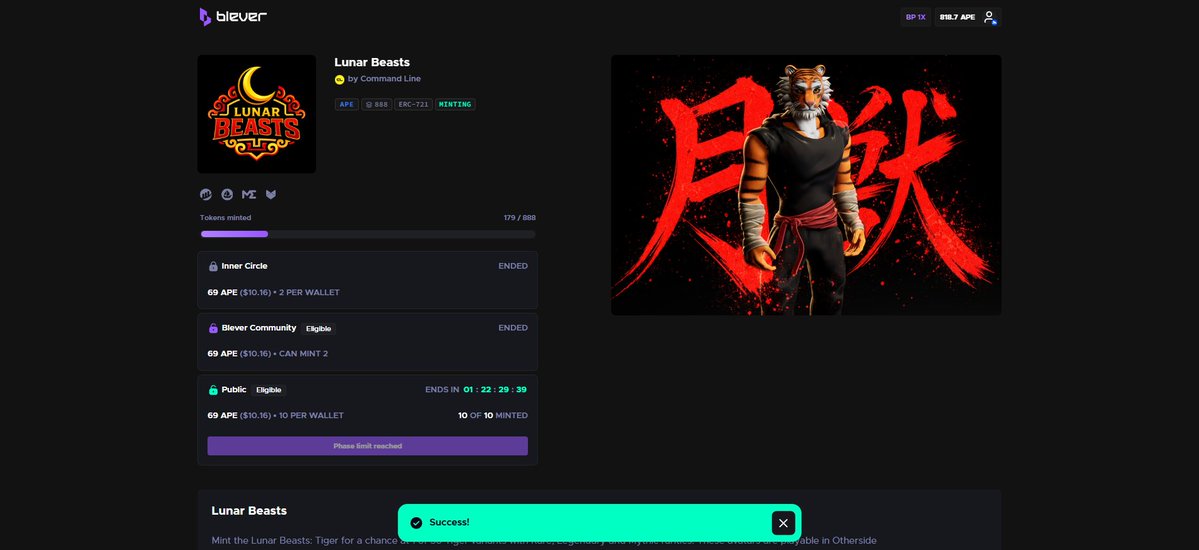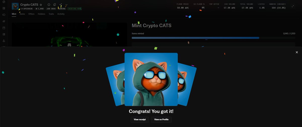 他们进行了完美的铸币过程。他们为 ApeChain 内的所有社区提供了铸造 JNKYZ 保释通行证的机会,只需花费