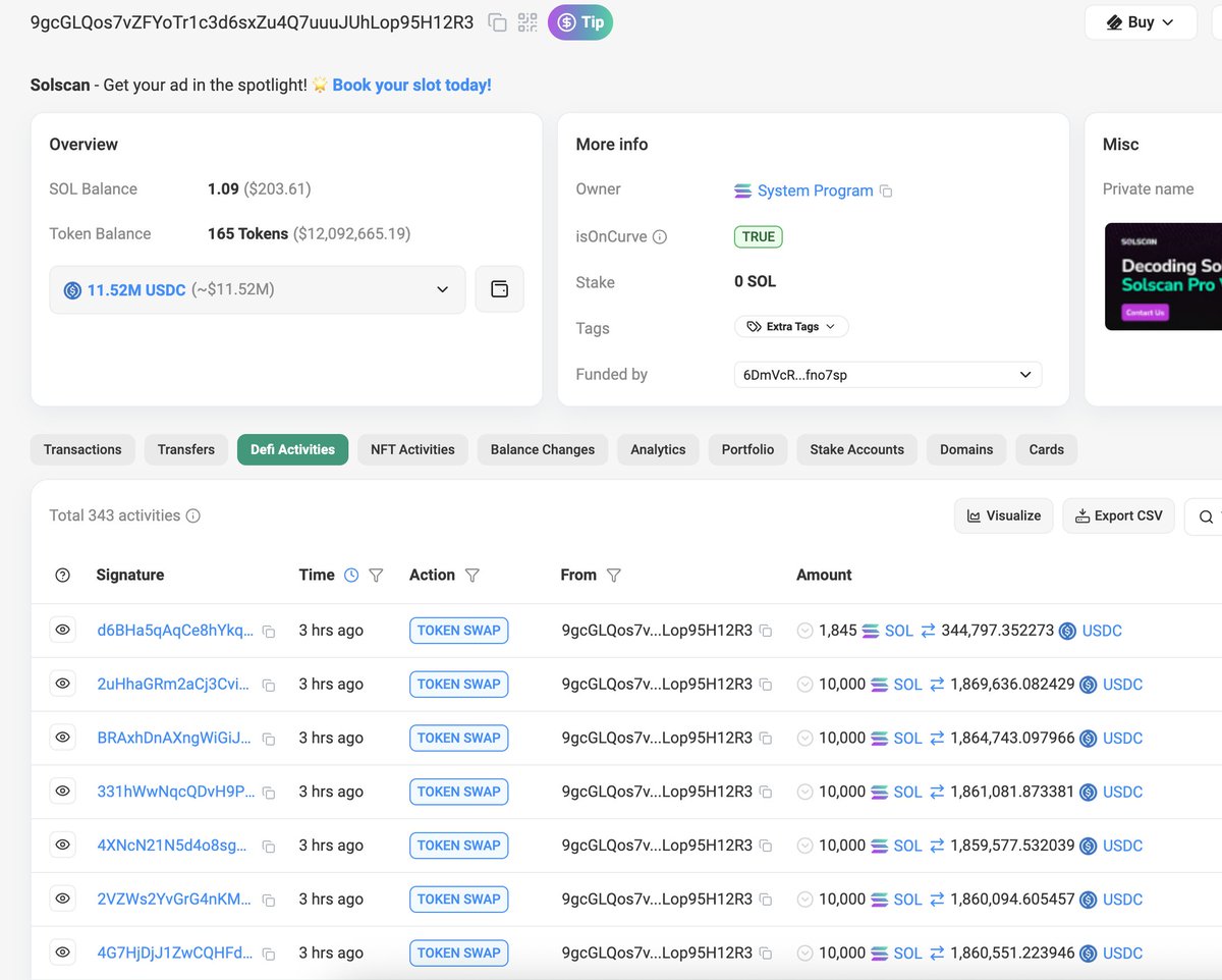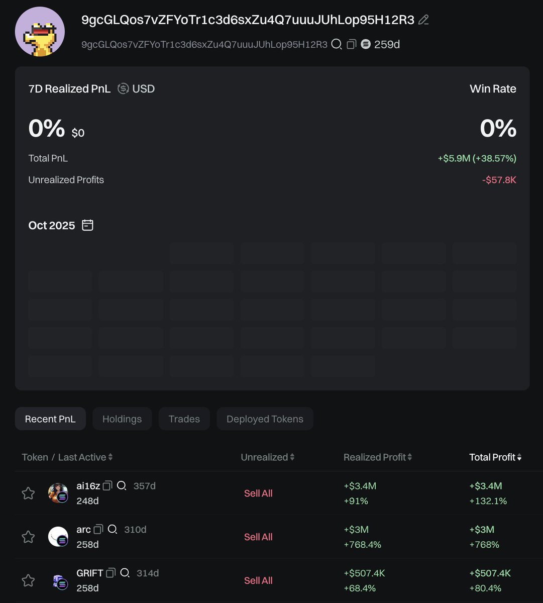 聪明的交易者 9gcGLQ 此前在 $ai16z 上赚了 340 万美元,在 $arc 上赚了 300 万美元,三小时前以 186 美元的价格卖出了 61,845 个 $SOL(1152 万美元)。