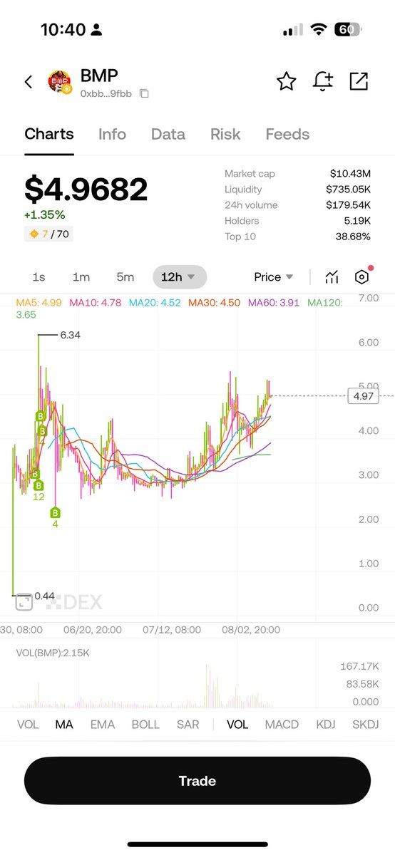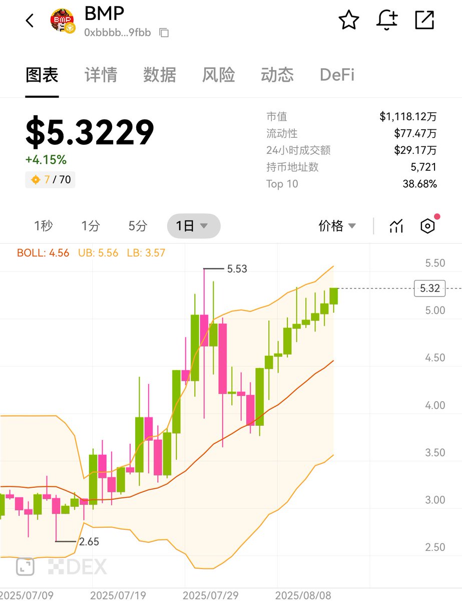 前几天天忙的推特都没时间发, 今天稍微喘口气,发现 $bmp 新高了。 成功进入 1000w 美金市值。 如果你去仔细研究BMP的历程和项目的做事风格,就会知道 1000w 真的仅仅只是个开始。